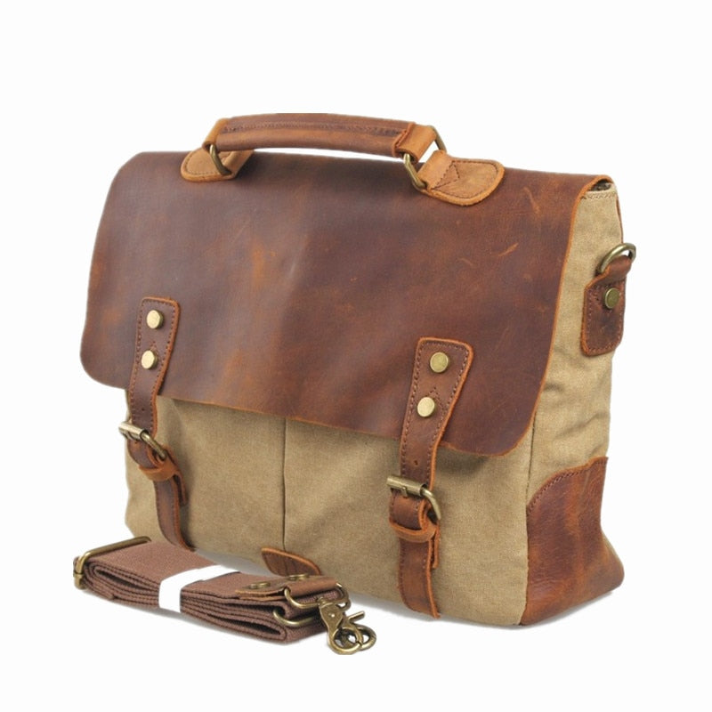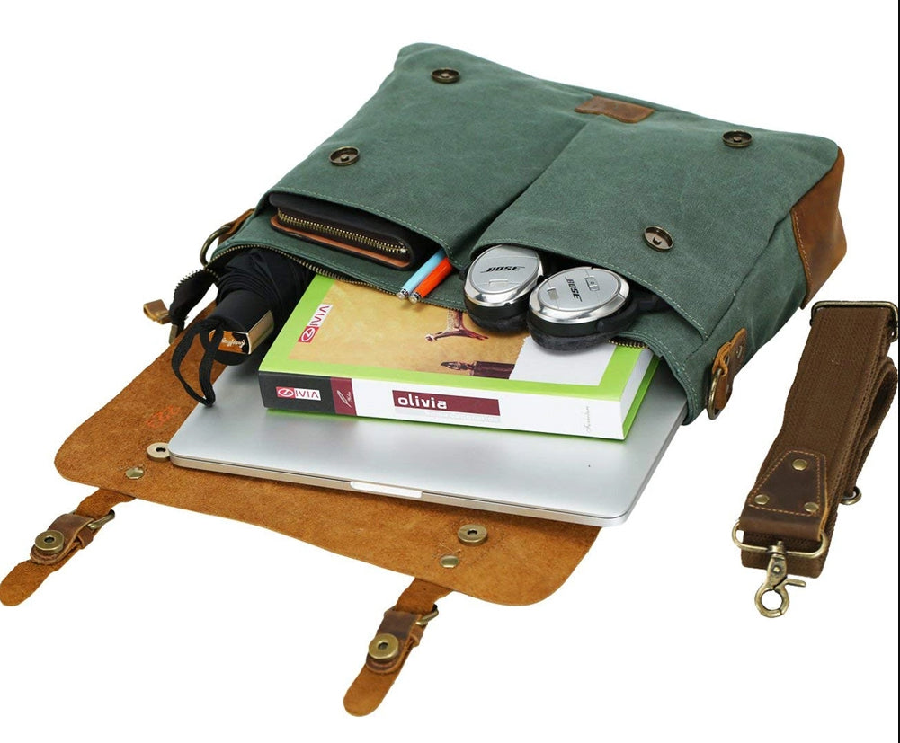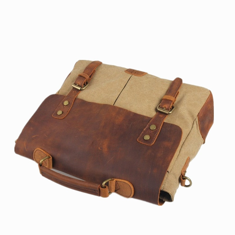 Bolso mensajero vintage ideal para llevarlo al trabajo o la universidad con un toque original, elegante y funcional. El compartimento principal se puede cerrar de forma segura con una cremallera. En su interior posee un bolsillo con cremallera, dos ranuras para bolígrafos y dos bolsillos abiertos ofreciendo un espacio adicional para tus objetos más valiosos.