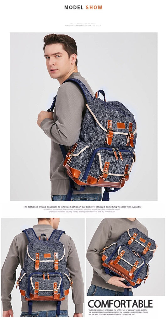 Carcassonne – Mochila vintage y retro cuero y lona para ordenador portátil – 4 colores