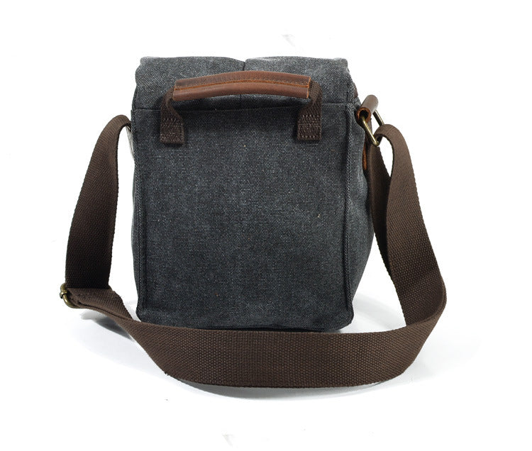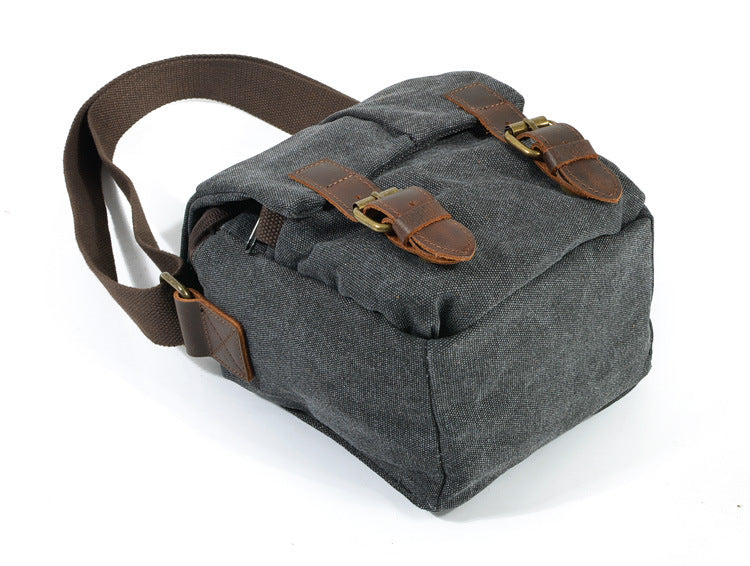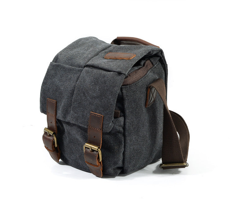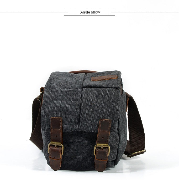 El olor a vintage de la tela de algodón y el cuero genuíno, complementan los estilos retro-militares nódicos de esta bandolera para cámara de fotos, transportándote a otra época, una época donde se diseñaban las cosas para durar mucho tiempo.